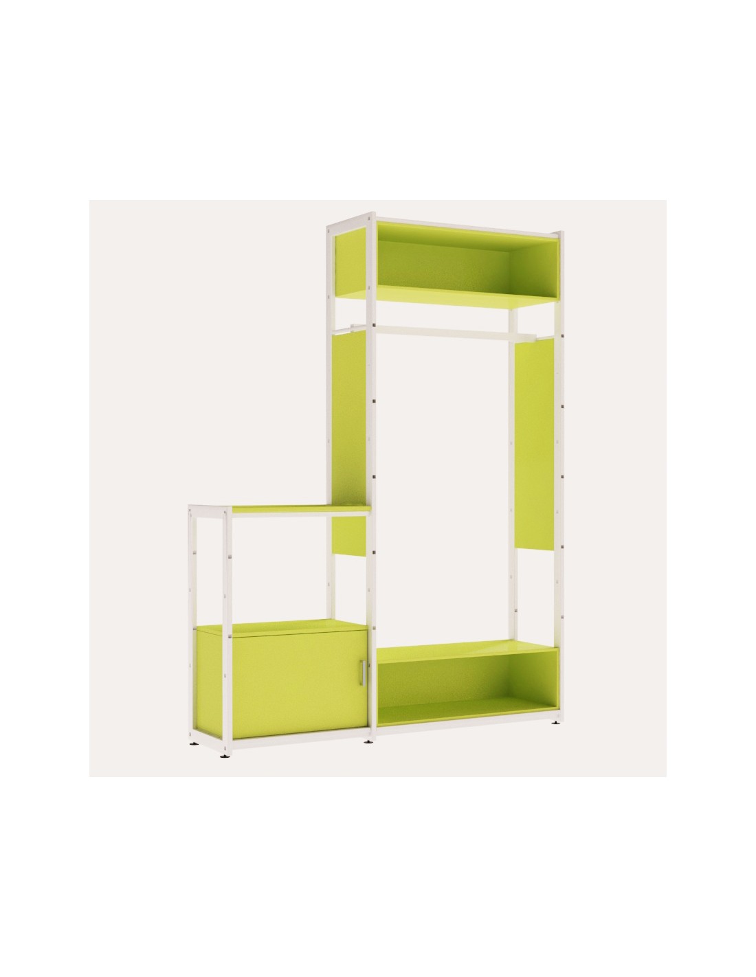 ARREDO AUTOPORTANTE BIFACCIALE PERSONALIZZATO METALLO BIANCO OPACO- LEGNO VERDE LIME