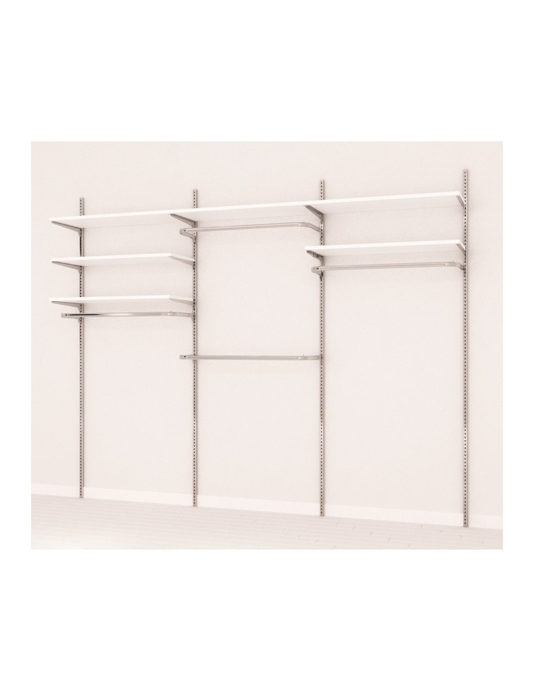 KIT ARREDAMENTO DA 3 M 6 RIPIANI 4 APPEDERIE FINITURA CROMATO-BIANCO