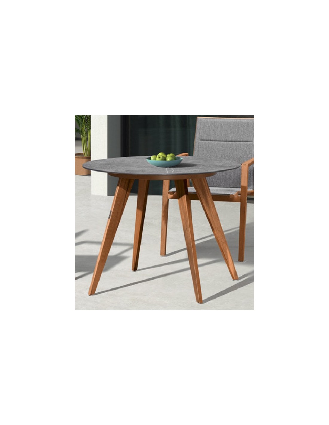 TAVOLO ROTONDO IN TEAK CON PIANO IN CERAMICA