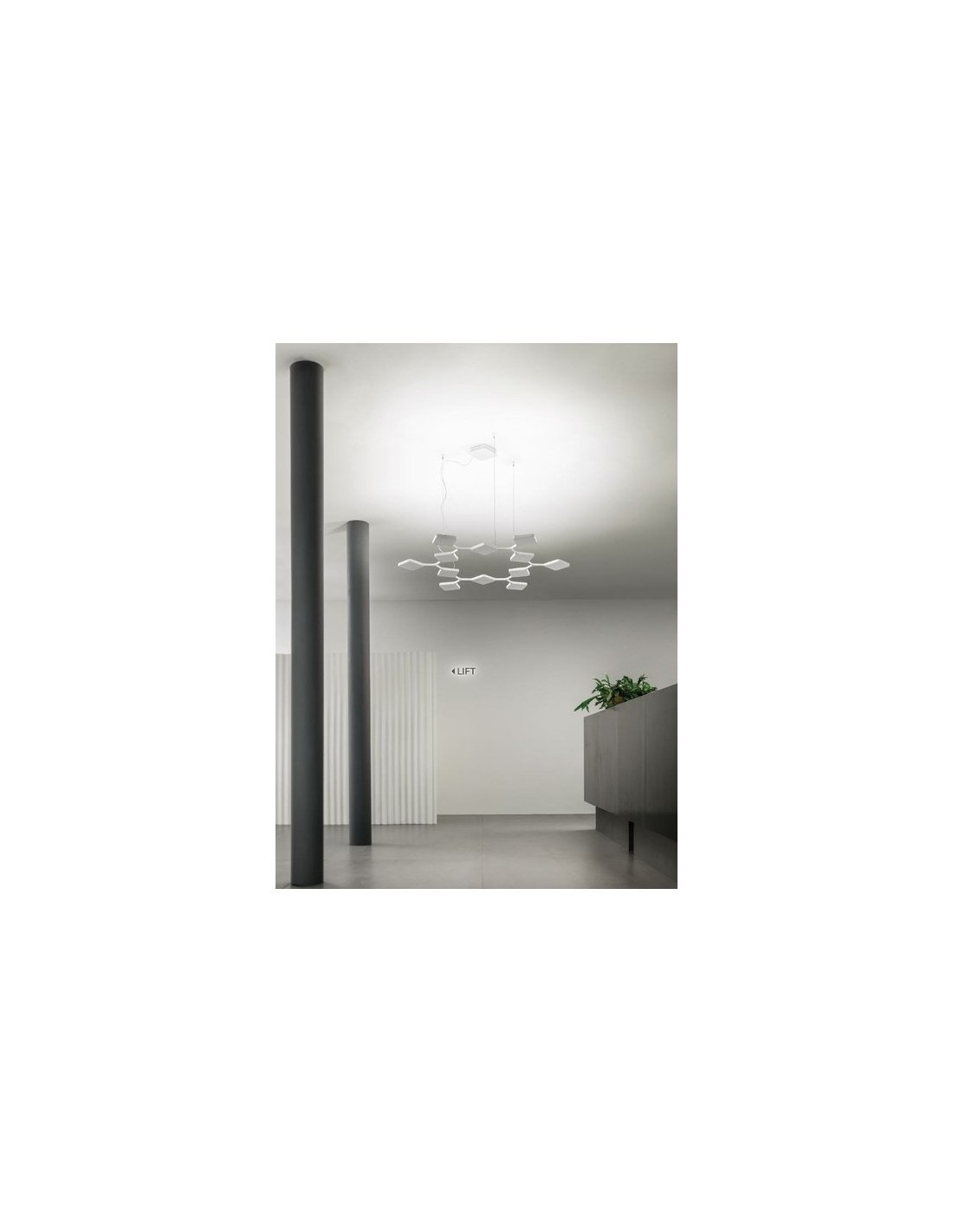 • Moduli in alluminio, diffusori in policarbonato, coprifilo in metallo. Finiture: bianco,